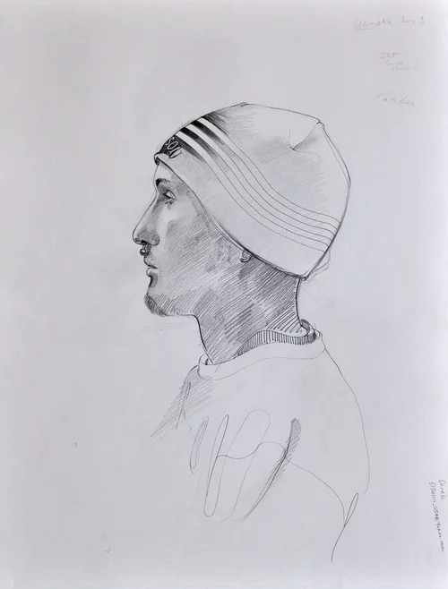 Originally these pencil drawings weren't intended to go together. But one day I noticed how great a couple of them made by different people looked side-by-side. It struck me that different drawings, made by graphically incompatible ways of working, happily enhanced one another when placed "cheek to jowl." They actually started to look diminished on their own after enjoying these drawings sitting next to one another for a while. Being paired together reveals their contrasts and similarities and through this greater input we are thus able to gather a greater sense about the sitter as well – not to mention the artists. The most successful combinations also seem to uncannily mirror one another.