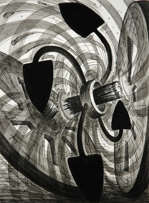 I was looking at Christian Boltanski, as well as the photographs of Berndt and Hilla Becher when I wondered if it were possible to do a Becher type piece but with a series of black and white drawings, instead of photographs. I wanted the eye to jump around, and see all the differing permutations, making the relationship between the drawings and the sense of infinite possibility the content of the work. I have always been interested in creative possibilities, trying it one way and then another, and then another...There is something inherently positive and life affirming about our ability to think of new things out of seemingly nowhere.
