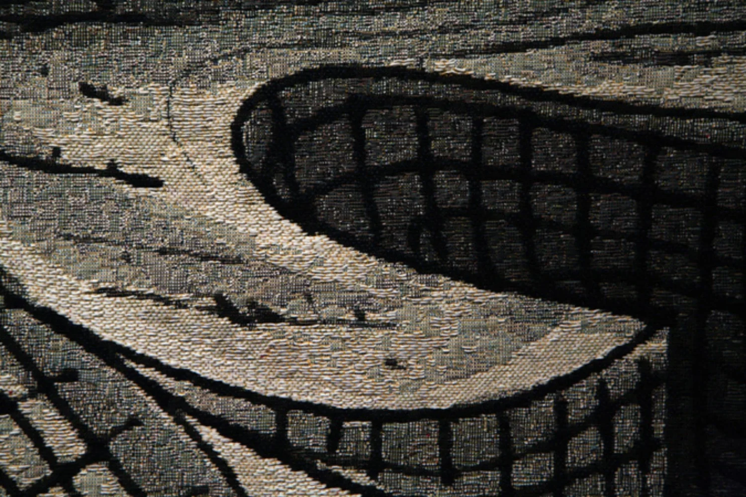 Strange as it may seem, I am not the faintest interested in fantasy. It leaves me unsatisfied, like some people feel after they accidentally drink decaf instead of a full bodied brew. Fantasy avoids reality; it would rather look the other way. I am fascinated by the imagination, and the way it will look directly into the fire of reality, and transform it in some way or another. It sums it up, without making it smaller. It can put life experience in a nutshell and the cosmos in there too. The ideas behind these drawings and the tapestries made from them, started as sculptures of tools back in 1974. Shovels and the like. The shovels became animated through drawings, and they eventually dug trenches out of which these large primal forms came. Temples capped the trenches, and then the whole image became inverted, as if the temples are now hanging onto the earth, rather than sat on top of it. The crust of the earth is seen as only a meter thick, with black liquid? ink? energy? falling out and splashing off the upturned eaves.